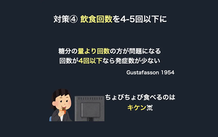 だから砂糖の量よりも回数の方が虫歯のリスクを上げるということがわかりました。