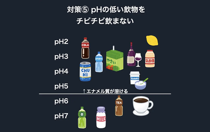 対策⑤ pHの低い飲み物をチビチビ飲まない