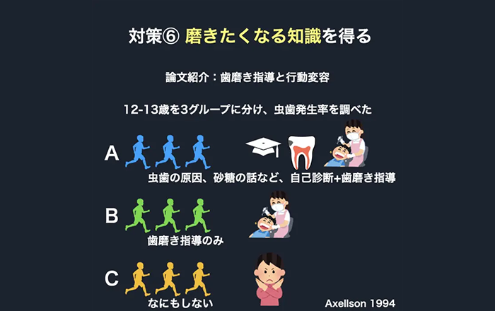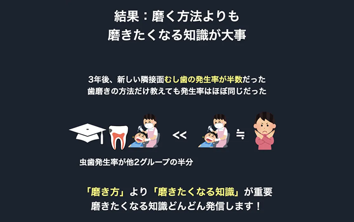 つまり、なぜ磨かないといけないのかを伝えずに磨き方を伝えても意味がないってことです。