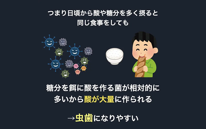 それがさらに繁殖して、同じ量の磨き残しでも溶ける量が多い状態になるんです