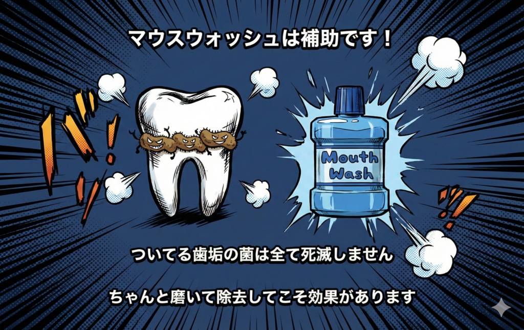 マウスウォッシュをすれば歯を磨かなくてもいいんじゃないかと思っている方へ