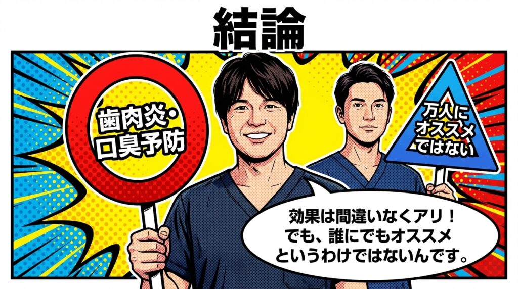 どちらにしろ化学的効果に期待しすぎず、歯ブラシの補助として使うことが重要だと思います!