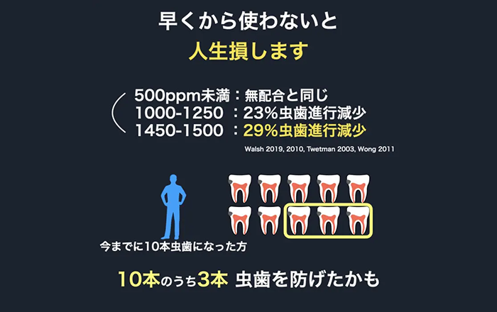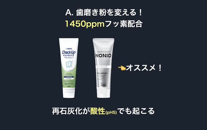 歯磨き粉を変えてください!フッ素濃度1450ppmFのものに!
