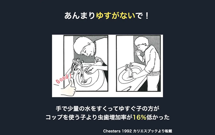 1回ゆすいだのと4回ゆすいだのでは唾液に残るフッ素濃度は4倍違います