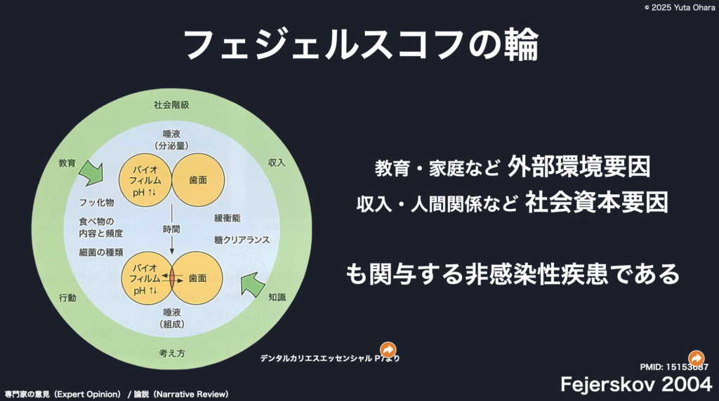 - 食生活、歯磨きの習慣、唾液の性質、フッ素の使用など、多くの要因が複雑に関係し合っているのです。