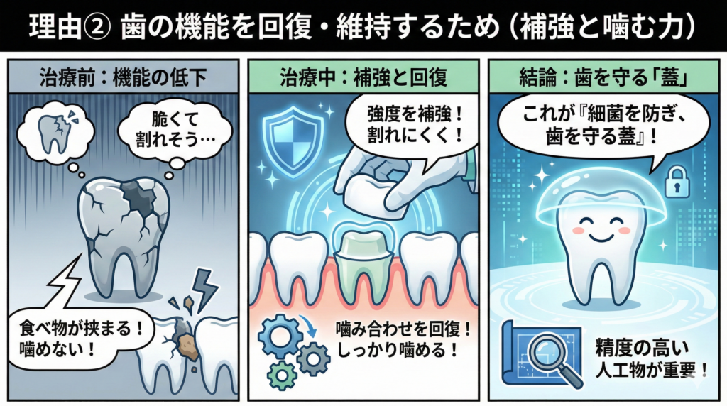 理由②歯の機能を回復・維持するため(補強と噛む力)