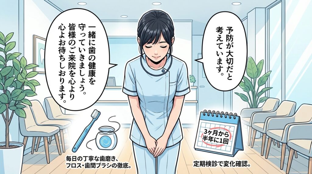 一緒に歯の健康を守っていきましょう。皆様のご来院を心よりお待ちしております。