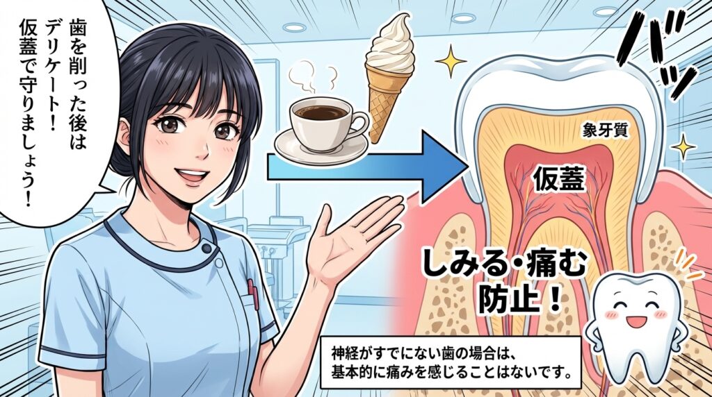 ( 神経がすでにない歯の場合は、基本的に痛みを感じることはないです。)