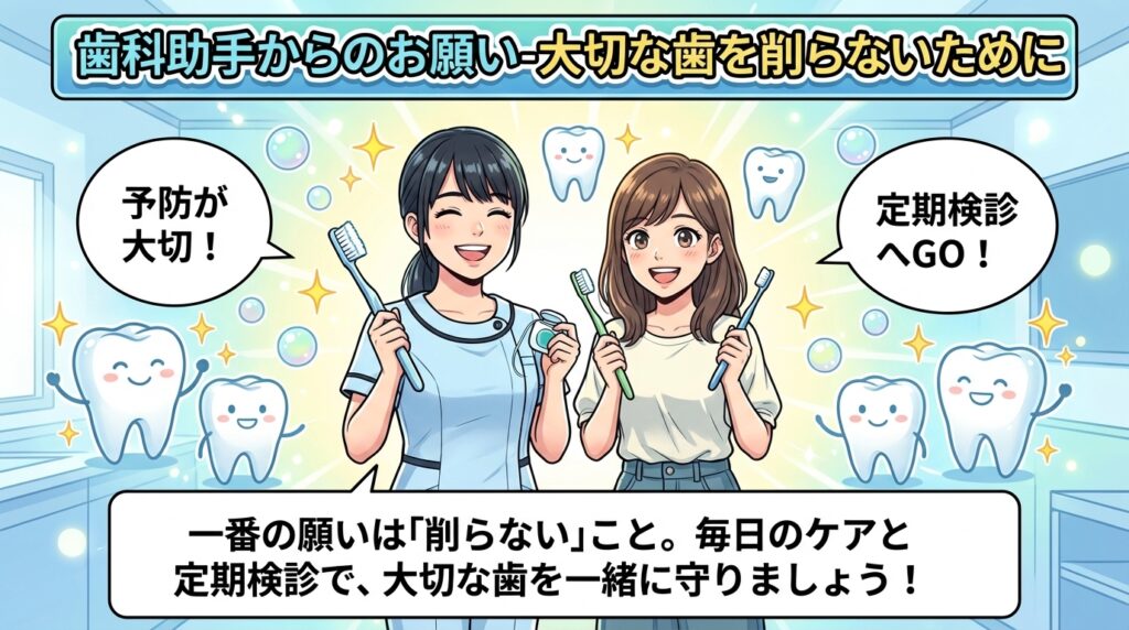 ここまで、歯を削ったあとの流れについて紹介してきました。しかし、私たち歯科スタッフが一番願っているのは、患者さまの歯を一本も削らずに済むこと、そして削った部分が再治療にならないことです。