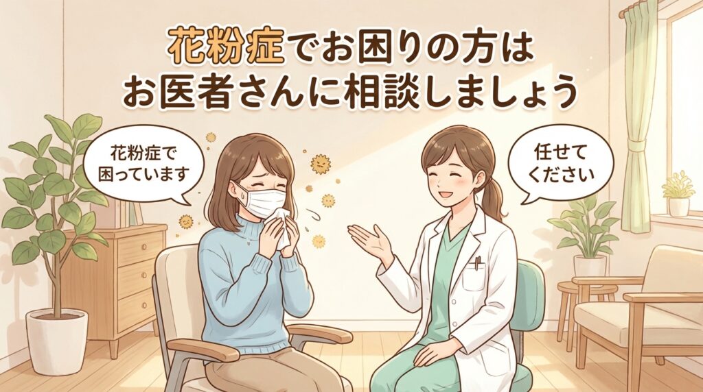 ひどい花粉症にお悩みの方はお医者さんに相談しましょう。