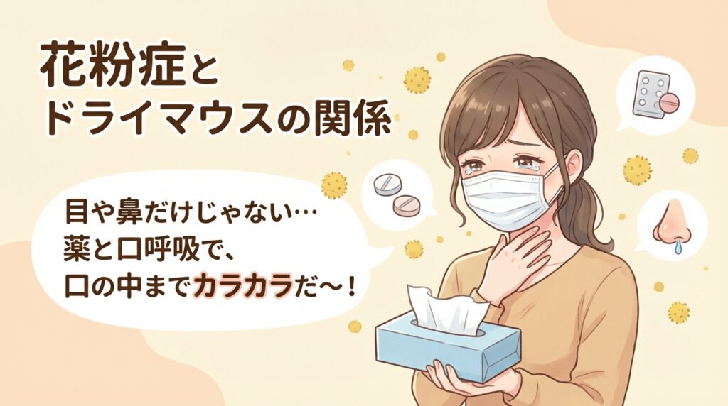 花粉が飛ぶこの季節、目や鼻の症状だけでなく「なんだか最近、口の中が渇くなあ」と感じることはありませんか?