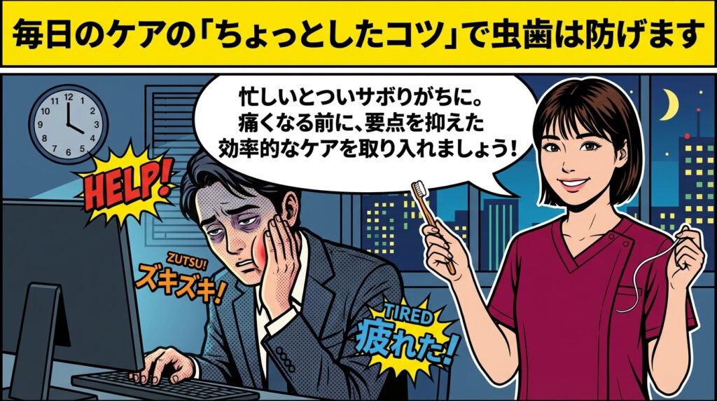 【毎日のケアの「ちょっとしたコツ」で虫歯は防げます】