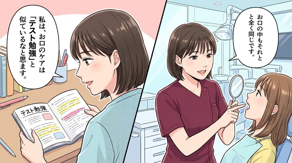 私は、お口のケアは「テスト勉強」と似ているなと思っています。