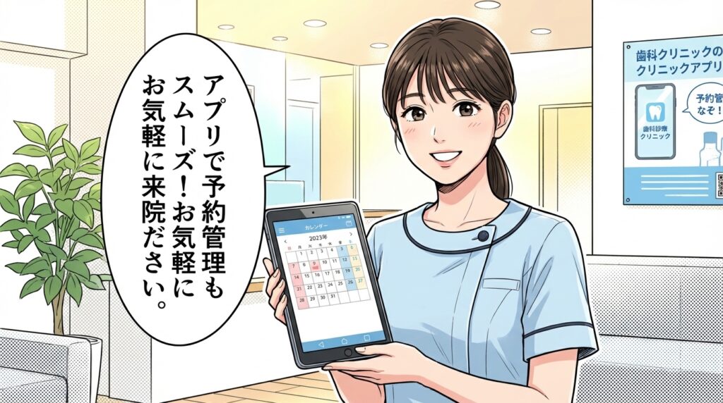アプリを使って通院のスケジュール管理をスムーズに行っていただくことで、定期的な検診やクリーニングにも、もっと気軽に足を運んでいただければと願っております。